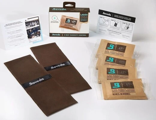 Extend the life of your treasured acoustic instrument with the 2-way humidity control kit from Boveda. Fluctuating humidity levels can wreak havoc on your acoustic instrument, causing it to warp, shrink, and crack. Not only does that ruin your instrument’s aesthetics; over time, it can ruin its tone or, ultimately, render it unplayable. Boveda’s unique product uses a specially formulated pure water and natural salt solution encapsulated in a water-vapor permeable membrane to maintain a constant relative humidity level of 40%–50% when placed alongside your instrument in its case, preventing devastating humidity fluctuations. So, you can rest assured that your instrument is kept in an ideal environment. This large starter kit contains four 70-gram 49% relative humidity packets and two fabric 2-pouch saddlebags, ideal for acoustic wood instruments.