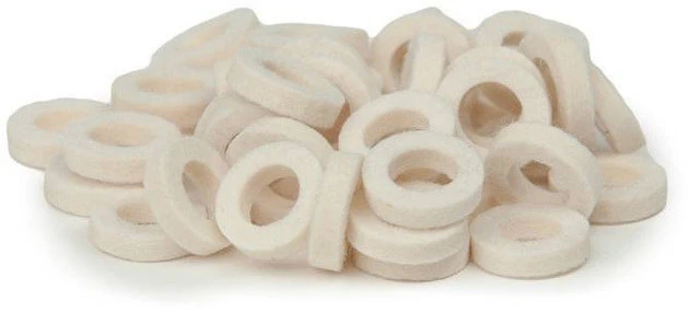 Natural Felt rings. Beautiful woolfelt color options to match your guitar! Natural woolfelt protects your guitar without any risk of lacquer damage. Each pack contains 22 rings to equip 2 full carrier arms. Finish: Tinged White