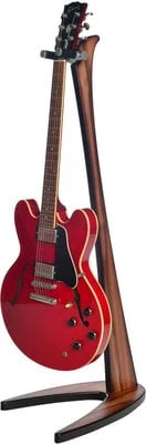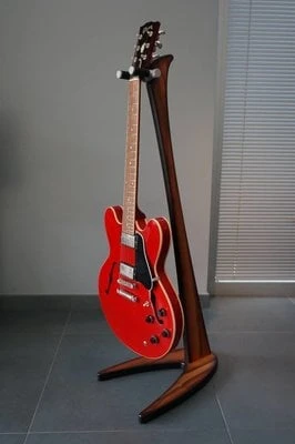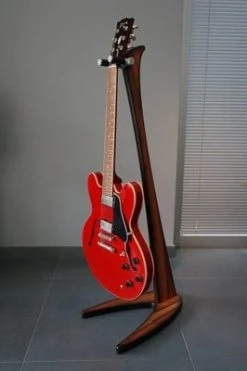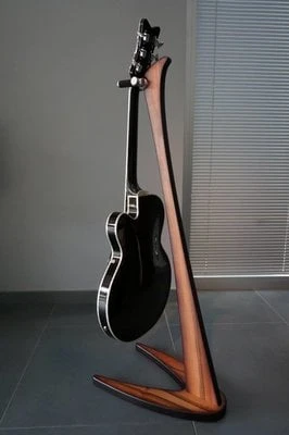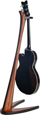 Phoenix is an exclusive wooden design guitar stand to show off your instrument. Made for a beautiful acoustic guitar, an exclusive electric or an eye-catching bass. For the finishing touch, choose your color woolfelt in our accessories section. Wood: TINEO, Botanical name: Weinmannia trichosperma. Growth area: Chile. Wood Description: This hardwood from Chile creates an exotic atmosphere. The colors are shades of an intense reddish brown to a dark elegant rosé. Often the wood is decorated with dark green black stripes, which produce their irregular distribution and variable width vibrant color contrasts. Features: New Exclusive Patented Design, AA Quality Woods, Nitrocellulose Safe, Perfectly Fits All Electric and Acoustic Guitars, Colorful felt options (see our accessories section). Specifications: Dimensions: Height: 111cm , Width: 29cm, Depth: 46cm. Maximum guitar length (from nut to bottom, guitar strap included): 100cm. Maximum instrument weight: 6 kg. Black aluminum carrier inclusive. Finish: Sunburst