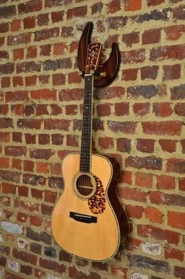 Wall Dragon wooden design guitar hanger shows off your instrument. Impress your friends and family with your beautiful acoustic guitar, exclusive electric or eye-catching bass. Customisable felt colors match your guitar. Wood: East Indian Rosewood, Botanical name: Dalbergia Latifolia. Growth area: India, Sri Lanka and Indonesia. Wood Description: Heartwood of East Indian Rosewood can vary from a golden brown to a deep purplish brown, with darker brown streaks. The wood darkens with age, usually becoming a deep brown. Features: New Exclusive Patented Design, AA Quality Woods, Nitrocellulose Safe, Perfectly Fits All Electric and Acoustic Guitars, Colorful felt options. Specifications: Dimensions: Height: 32cm, Width: 24cm. Maximum instrument weight: 8 kg. Gold aluminum carrier included. Finish: Sunburst