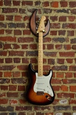 Wall Dragon wooden design guitar hanger shows off your instrument. Impress your friends and family with your beautiful acoustic guitar, exclusive electric or eye-catching bass. Customisable felt colors match your guitar. Wood: ZEBRANO, Botanical name: Microberlinia bisulcata. Growth area: Tropical West Africa. Wood Description: The heartwood is yellowish in color with dark brown veins that run parallel to the axe. When the wood is quarter-sawn or cut, the famous zebra-like drawing appears where the wood gets its name. The brown veins occur at intervals of 5-10 mm and are 0.5-1.5 mm wide. Features: New Exclusive Patented Design, AA Quality Woods, Nitrocellulose Safe, Perfectly Fits All Electric and Acoustic Guitars, Colorful felt options. Specifications: Dimensions: Height: 32cm, Width: 24cm. Maximum instrument weight: 8 kg. Gold aluminum carrier included. Finish: Sunburst