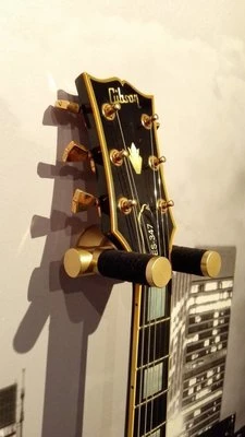 Aluminium Wall Hanger shows off your instrument. Impress your friends and family with your beautiful acoustic guitar, exclusive electric or eye-catching bass. Customisable felt colors match your guitar. Features: New Exclusive Patented Design, Nitrocellulose Safe, Perfectly Fits All Electric and Acoustic Guitars. Finish: Gold.