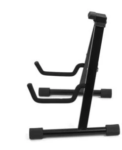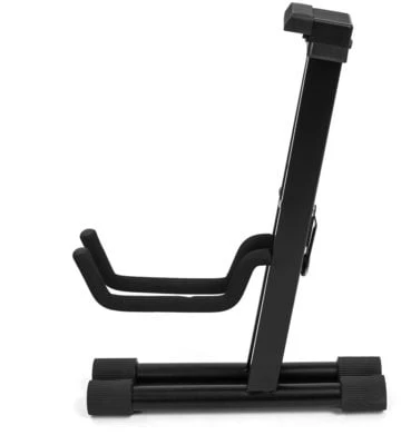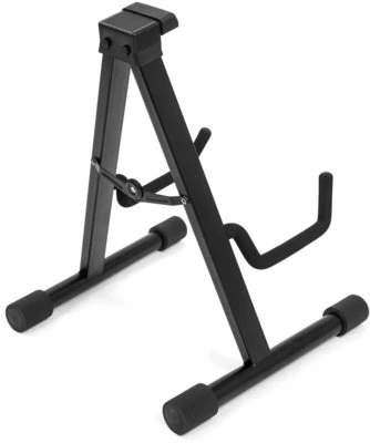 Robust folding stand for acoustic and electric guitars. Whether at home, in the studio or at a concert, this guitar stand is a universal companion for every situation. The stand can be set up and folded up again with a single movement. The width is also infinitely adjustable so that the stand is also suitable for smaller instruments. The contact surfaces are completely coated with a rubber coating to protect the lacquer of the instruments. Not suitable for instruments with nitro varnish.