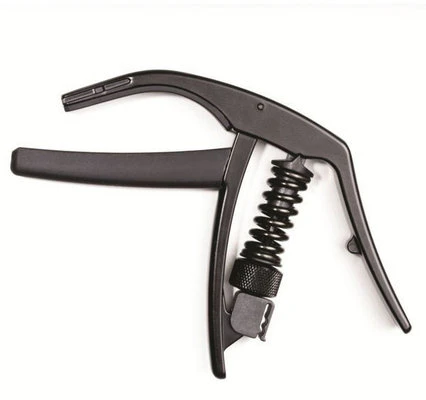 Capo designed specifically for use on 6-string electric and acoustic guitars from NS Artist series that utilizes a patented tri-action geometry reducing the force required to open and close the capo while applying even tension regardless of neck profile. Combined with the micrometer tension adjustment and direct horizontal pressure, this capo virtually eliminates pulling the strings side to side and the need to retune during use. Additionally, the trigger-style design and lightweight aluminium construction adds no obstruction or noticeable weight to the neck of the instrument. The capo includes an NS Mini/Micro Tuner mounting bracket, allowing user to add tuning capabilities to the capo (tuner is sold separately). A pick holder is included.