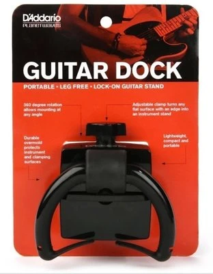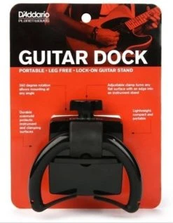 Tabletop Guitar Cradle. Turn any table edge into a reliable stand for your guitar, with the Planet Waves Guitar Dock. Its rotatable neck cradle lets you mount it at any angle, and materials won’t harm your instrument or mounting surface.