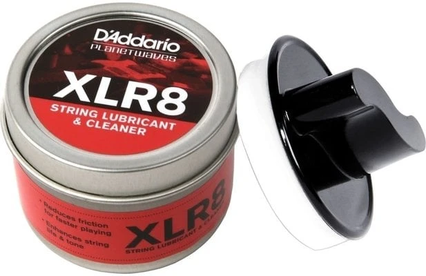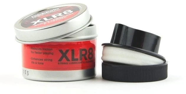 String Lubricant and Cleaner. XLR8 lubricates and cleans your strings for faster playing and longer life. Simply wipe the easy to use applicator up and down your strings and enjoy the frictionless feel of the strings allowing you to play faster while also experiencing less finger noise and enhanced tone. Packaged in an airtight metal tin that will prevent XLR8 from drying out prematurely.