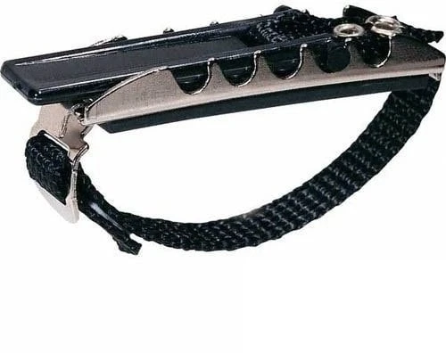 Capo Dlx Pro Curved. Jim Dunlop Toggle Action Capos are designed for both curved and flat fingerboards, providing extremely reliable and firm clamping. This easy-to-use nickel-plated capo will not scratch the guitar and has a low profile guaranteed not to hinder your fingering. Sleek contour design with the exclusive adjust-o-strap system.