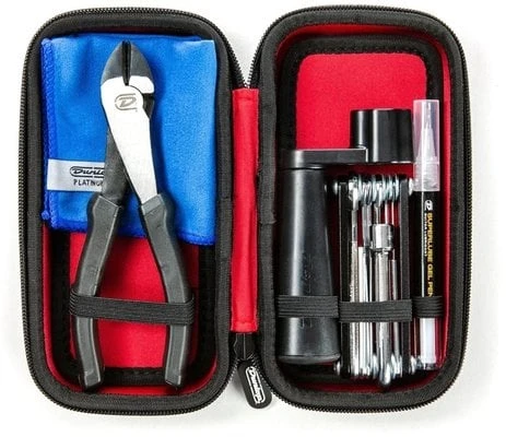This kit has everything a guitar player needs for a quick and easy string change: a String Cutter, a Stringwinder, a Multi-Tool for tweaks, and a Superlube® Gel Pen to help stay in tune.