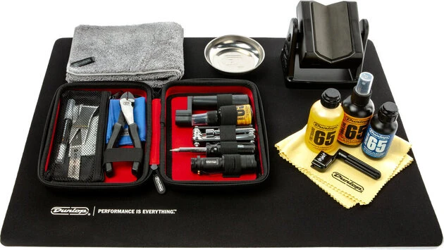 The System 65 Complete Setup Tech Pack has everything you need to treat your guitar or bass to a professional quality setup that keeps your instrument looking and performing its best for years to come. With everything from the Setup Mat and Neck Cradle to the Setup Tool Kit on hand, all you’ll need is a flat surface. Includes a bonus System 65 Guitar Tech Kit—Formula 65 Polish & Cleaner, Fretboard 65 Ultimate Lemon Oil, Ultraglide 65 String Cleaner & Conditioner, and two Polish Cloths—for the TLC you won’t get anywhere else.