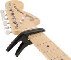 Guitar capodaster providing stable tuning for any electric or acoustic guitar with metal strings. It is equipped with an intuitive spring design, lightweight aluminum construction and is universal for any neck shape. It allows simple and fast application with one hand.