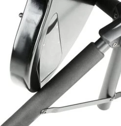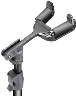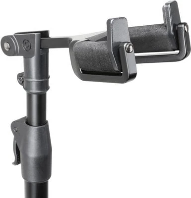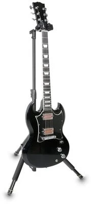 The GS 01 NHB is a stable and elegant guitar stand for acoustic, electric and bass guitars. It can be adjusted in height up to 108 cm and folds up. The clever “neck hug” mechanism secures the guitar automatically in the neck fork from slipping and opens automatically when the instrument is lifted from the tripod. The soft padding protects the guitar from scratches and does not damage the paint. Not suitable for long-term use with guitars that have a nitro lacquer finish.