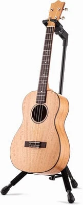The HERCULES Ukulele Stand UKS100B features the foldable Auto Grip System (AGS) yoke, instant height adjustment clutch and Specially Formulated Foam (SFF) padding on all contact points. The folding built-in Auto Grip System safely locks the instrument in place. It can accommodate ukuleles of all sizes from soprano to baritone.
