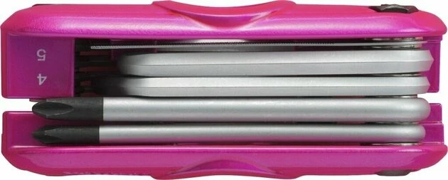 Quick access multi tool for Guitars. 11 essential guitar setup tools. It is so compact that you can carry the MTZ11 in your pocket. The convenient center holes in the MTZ11’s body make it easy to access any tool you need. The wrench sizes are written clearly on the body for instant access and use.