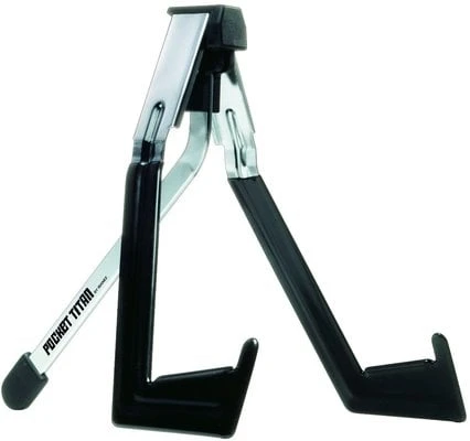 Ultra-compact and foldable “Pocket Titan” stand that is suitable for electric guitar or bass guitar. It has been designed to be easily folded and fitted into a compartment or pocket of any standard case or gig bag. It features a heavy-duty metal construction with black finish.