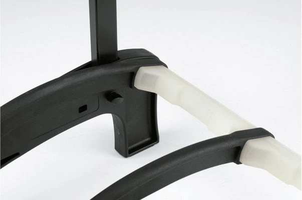 The Guardian holds 5 guitars securely, saves space and allows you an easy overview of your guitars. Ideal for use in the studio, on stage in a shop or at home. No matter whether you have acoustic, electrical or bass guitars, the special instrument-compatible supports protectively hold max. 5 guitars. The protective bars stop the guitars from rotating and prevent inadvertent removal or knocks or bumps when taking the guitars from the stand or placing them. The soft pads made of high quality thermoplastic elastomer have cushioning characteristics. Therefore they protectively take the weight of the guitar and avoid damages of the instrument. The innovative folding mechanism used on the Guardian allows the stand to be carried easily and it can be left standing upright. Highly flexible, sub-divided support arms with integrated pick holders mean the guitar can be held from either side (right or left) and that the strings are untouched. The structural design allows the Guardian to be positioned against a wall. The Guardian is available entirely in black or with translucent (colorless) elements made of high quality Elastomer plastic, which are suitable for all kind of guitar lacquers, including nitro lacquer. Discoloration from the stand to the guitar does not occur. SpecsBase Dimensions: 996 x 335 mmHeight: 700 mmInstrument Support: non-marring plastic materialSize when folded: 996 x 670 x 173 mmSuitable for: Acoustic and electric guitarsWeight: 4,65 kgSpecial FeaturesProtective bars prevent damage from bumps or knocking;holds the guitar’s neck without touching the strings;additional slots for electric guitarsintegrated pick holder