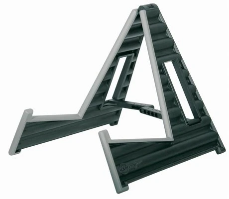 good value guitar stand for acoustic guitars lightweight construction and easy handling. The wave-design and high quality plastic grant a very good stability despite of the low weight. With the folding mechanism it can be put up or folded up with only one hand movement. Instrument friendly Contact surfaces. The stand can be adjusted to various guitar sizes. Support plate depth 135 mm. weight: 0.6 kg, H: 320 mm. colour black