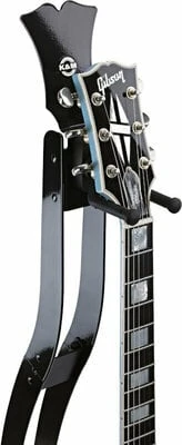 With the attractive Guitar Station, every guitar is perfectly staged – whether at home or in the studio. Thanks to the flexibly adjustable and rubber-coated mounting brackets and a usable height of 980 mm, the Guitar Station (M) is suitable for most acoustic and electric guitars. (For basses and longer “bodies” we offer alternatively the model 17640). The solid metal construction features a sleek design with a high-gloss powder coat finish. The curved base plate with five protective felt pads ensures a secure stand.