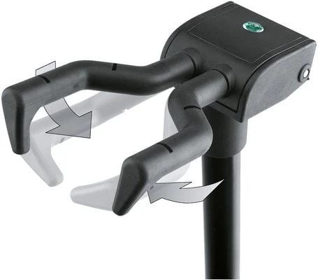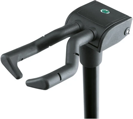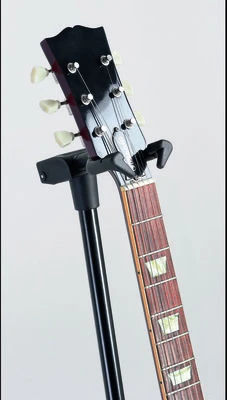 Folding stand for all guitars. Features a patented flexible hooking-in and clamping system which quickly and firmly grasps the guitar neck. Fits most instrument necks. Studs at support arms provide extra protection. Height adjustment with convenient locking levers. Anti-twist feature on the extension rod for extra safety. High quality non-marring rubber on the stand’s neck grip and base helps to protect the instrument. Stable robust base. Height: from 550 to 1,000 mm. Weight: 1.5 kg. Colour: Black.