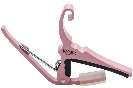 Capos for acoustic guitar is expertly engineered and built to last. It is reliable and does just what it is designed to do — clearly raise the pitch of the guitar so you can play in a different key without retuning or changing fingering. Seasoned professionals and beginning players alike appreciate how the Kyser® Quick-Change® helps them transpose their guitar in seconds, with only one hand. Color: pink