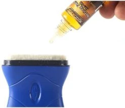 Three-Piece String Care Kit contains one each of our most popular items to care for all string types found on your guitar, bass, banjo, ukulele, mandolin, etc. Just fuel up our ergonomic, no mess applicator to quickly and easily care for your strings. Our wide applicator fits across all your strings in one easy swipe. Pressure to the pad releases the solution to clean & lubricate your strings to last longer and sound better while reducing finger noise and enhancing the speed you can slide your fingers. String Fuel is a hybrid blend of naturally occurring oils that are speed blended with premium quality mineral oils to deliver as string cleaner & lubricant unlike any other. It’s silicone free and even conditions unfinished fretboards. Fill the completely dry applicator pad with about half the bottle, but often less is needed when re-fueling. Comes with a lint free 6″ x 6″ microfiber cloth that cleverly stores inside the handle.