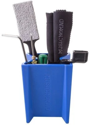 Support cradle for guitar neck, made of innovative soft material. It is designed for easier instrument cleaning or string changes. It contains 5 in 1, with five different heights and angles and allows to find an ideal position for each instrument. It can be used with guitar, bass guitar, violin, banjo, ukulele, mandolin, etc. Color: Blue.