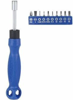 10 pc. screwdriver bit set including Phillips #1. 8 Allen SAE/Metric Keys: .050″, 1/16″, 3/32″, 1.5mm, 2.0mm, 2.5mm ,3.0mm, 4.0mm. 7 Hex Wrench Sizes: 10mm, 12mm, 14mm, 1/4″ 1/2″ (2) and 7/16. Perfect for adjusting most popular size screws, nuts and allen keys. Handy all in one tool.