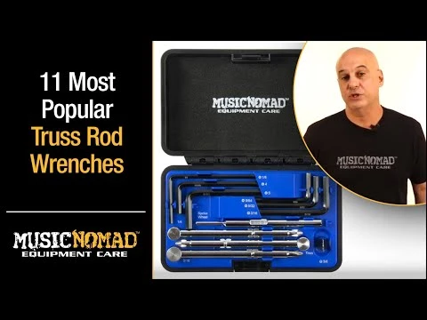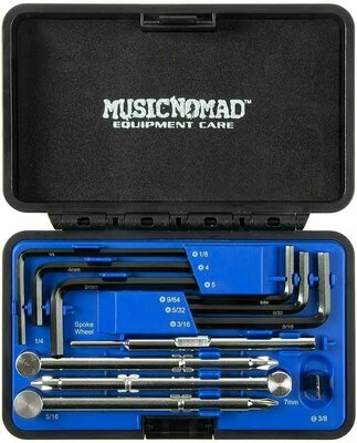Work on or got a lot of guitars? Stop fumbling around looking for the right wrench for your truss rod adjustment. A must have for every gig bag or work station, MusicNomad’s Premium Guitar Tech Truss Rod Wrench Set offers unmatched versatility and organization in one compact, rugged case. Designed to work on most electric, acoustic, and bass guitars this 11-piece set comes with 6 Allen Key sizes, 3 Socket Wrench sizes, a specially designed Spoke Wheel tool and a 3/8” Blade bit. Bonus features include: laser etched sizes on each wrench, 3 magnetized screwdrivers for small truss rod cover screws and the Socket Wrenches and Spoke Wheel tool slide into MusicNomad’s Octopus handle (sold separately) for additional leverage and comfort. With lots of guitar brands and models out there make sure you check out MusicNomad’s Truss Rod Wrench size by Brand Finder to see a list of over 50 Guitar Brands/Models this kit will work on including Fender, PRS, Gibson, Taylor, MusicMan, Epiphone, ESP, EVH, Gretsch, Guild, Cordoba, Ibanez, Jackson, Knaggs, Charvel, Bourgeois, Takamine, Yamaha to name a few and the very few it does not work on (mostly acoustics that the truss rod is recessed deep in the soundhole). That’s MusicNomad quality – raising the bar in equipment care.