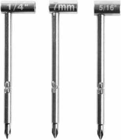 - 3 Socket Wrench sizes: 1/4″, 5/16″, 7mm and each includes a PH#1 magnetized screwdriver for truss rod covers