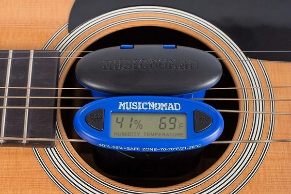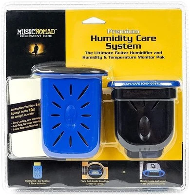 The ultimate Humidity Care System combines our two best sellers with our easy-to-use, no-mess, and low-maintenance guitar humidifier The Humitar, and The HumiReader a humidity and temperature monitor that is simple, accurate and reliable. The Humitar safely releases moisture evenly to eliminate potential problems such as warping, shrinking and, worse yet, cracking. The Innovative Humid-i-Bar sponge holds a lot more water than similar products. This means less monitoring on your end while resting assured your fine guitar is cared for. The HumiReaders innovative design allows you to customize where you want to measure. In the acoustic guitar soundhole, right next to the Humitar!? Yes. This unmatched feature allows you to hang both the humidifier and monitor right from acoustic guitar strings and measure where you want to, inside the soundhole. The accurate sensor monitors your string instruments environment every 20 seconds and gives you the humidity and temperature readings on its LCD display. It also gives you the maximum and minimum range over the period you are measuring and can be reset at any time. If you prefer, you can measure inside the case near the headstock or fretboard/fingerboard. The HumiReader comes with a unique case holster that has a strong adhesive backing to stick to your case and hold the HumiReader. Or just place the HumiReader in any room you want to monitor. The HumiReader comes with many other cool features such as a reminder on the humidity and temperature Safe Zone you want to keep your string instrument at, a long-lasting AG 13 battery and Fahrenheit or Celsius readings.