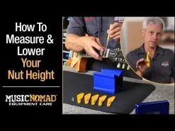 Being able to measure your string height at the nut is a critical step in the setup process. MusicNomad’s precision Nut Height Gauge will help you do it quickly & accurately. The gauge comes equipped with the 3 most common nut height sizes (.016”, .018”, .020”) plus 3 additional sizes (.012”, .014”, .022”) to accommodate a desire for lower action or a heavier pick attack. Instructions printed right on the handle makes it extremely easy to dial in your nut height. It’s perfect for electric, acoustic, classical & bass guitars & features laser etched markings that take the guesswork out of which gauge to use for each instrument. It’s made of premium stainless steel construction without the annoying, messy oil found on traditional feeler gauge sets. That’s MusicNomad quality – raising the bar in equipment care.