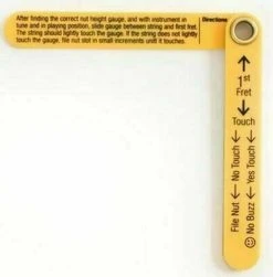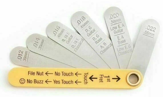 - Gauge Includes the 3 Most Common Nut Height Measurements (.016″, .018″, .020″) for Electric, Acoustic, Classical & Bass Guitars. Plus 3 additional sizes (.012”, .014”, .022”) to accommodate a desire for lower action or a heavier pick attack.