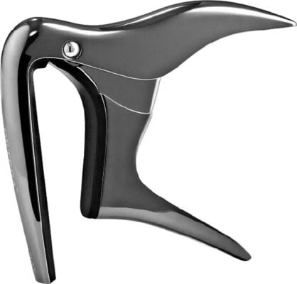 Capodaster for straight fingerboards up to a width of 52 mm. For guitars and bass guitars. Made of Aluminum alloy. Comes in a premium gift box. Color: Black chrome.