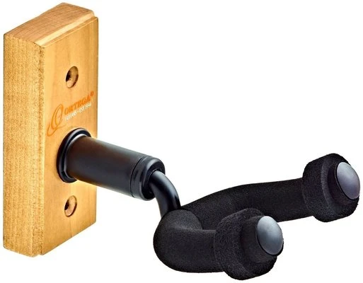 Guitar/bass wall hanger. Real wood base plate. Foam-covered neck holder (width: 4.5 cm) with stoppers. Perfect for home and store fitting, too! Included screws and drywall anchors. Color: Cherry.