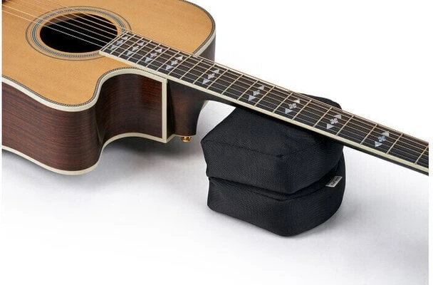 The RockCare Neck Rest is a shock-absorbing support for guitar necks. Its foldable design fits electric and acoustic instruments alike. The Neck Rest’s dense but flexible fine pellet filling acts as shock absorbent and cushions the instrument neck, even during hammer blows when you are working on the frets.
