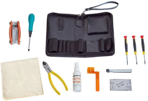 Every instrument needs to be set, adjusted, cleaned once in a while. The Rockcare Kit Pro is designed for guitars and bass guitars. You will find everything you need to set up and clean your tool. In addition, you have all these necessary components at your fingertips, thanks to a handy portable case where every tool and jig has its place.