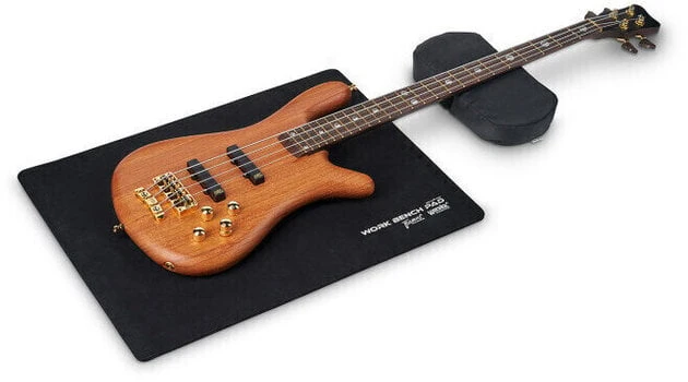 The RockCare Work Bench Set is a dynamic duo consisting of the Workbench Pad and Instrument Neck Rest. The RockCare Neck Rest is a shock-absorbing support for guitar necks. Its foldable design fits electric and acoustic instruments alike. The Neck Rest’s dense but flexible fine pellet filling acts as shock absorbent and cushions the instrument neck, even during hammer blows when you are working on the frets. The RockCare Workbench Pad is a soft non-slip benchtop to protect your instruments while working on them. It is made of a dense vulcanized rubber that is shock absorbent and does not slip. It cushions your guitar and protects the finish from scratches and dents.