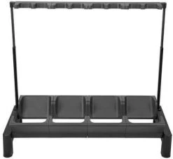 The RockStand Modular Multiple Stands take classic multiple instrument stands to a new level. The stand collapses easily into a compact, portable package and you can simply modify it to meet your needs as they grow. With the optional Spacer and Instrument Sets, your stand becomes flexible like never before to allow a wide variety of possible setups. All acoustic guitar holders can also accommodate two electric guitars or basses and the frame features telescope mechanics for added mobility.
