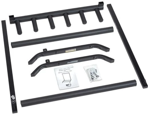 Multiple guitar Flat Pack stand for up to 5 guitars. Features: Securely holds 5 instruments (depending on model) – Colour: Black – Foam padded at areas getting in touch with the instrument – Collapsible for easy storage and transport – Easy to assemble, screws and tools included – Road-rugged metal construction – Non-slip rubber feet – Protected by patent.