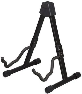 Standard A-style guitar stand with adjustable frame size and foldable steel construction. Weight: 1,8 kg. Frame adjustment from 210~345 mm. Height: 440 mm. Stand offers great stability for your instrument. Colour: Black.