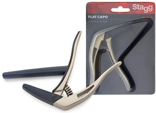 Flat “trigger” capo for classical guitar, easy to use and adjust due its ergonomic shape, with rubber coating for improved protection against scratches. Beige colour.