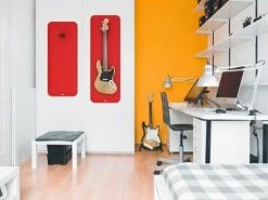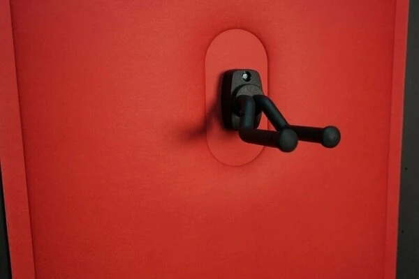 Having a hanger to hold and display a guitar is usual for a Musician. Now it is possible to combine this holder with an acoustic panel made from sustainable VMT.