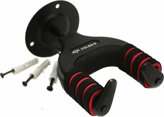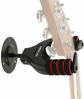 Steel wall mount with foam contact surface. The wall holder is designed for acoustic and electric guitars and bass guitars. It is made of aluminum alloy and plastic and provides a perfectly firm hold for your tool. The holder is equipped with a self-locking hook that automatically locks the neck of the guitar or bass guitar and thus guarantees maximum safety when hanging it. The width of the holder is 95 mm. Depth: 160 mm. Three holes for wall mounting. Comes with mounting screws.